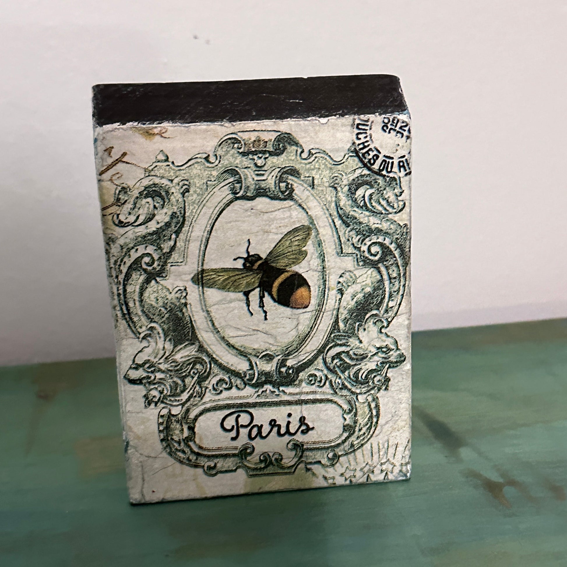 A charming decoupaged wooden house that exudes vintage french elegance. this piece brings a touch of old- world sophistication to any space. Handcrafted with KIY Paint in White Swan and Littl Black Dress, and finished with DIY Liquid Patina. it has a beautifully aged look kthat enhances its antiqued-inspired aesthetic. Perfect for display on shelves, tabletoops, or as part of a frence country or shabby chic decor,