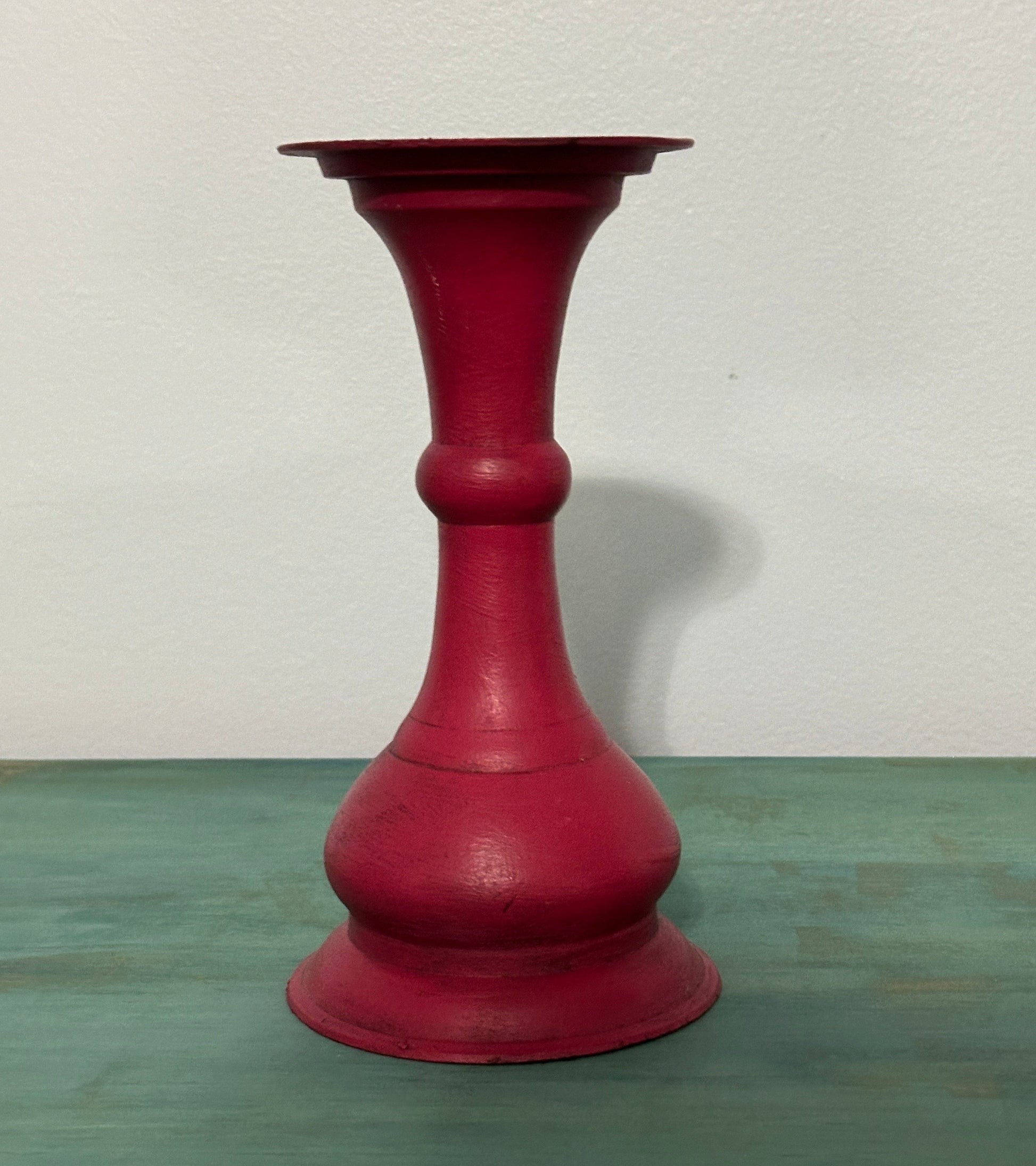 This bright pink candlestick holder brings a lively and bold presence to any space. Its curbaceous design, featuring a flared top and rounded base ,excudes elegance with a modern twist. The vibrant pink finish makes it a statement piece, perfect for adding a pop of color to contemporary, eclectic, or bohemiam decor. Repurposed and refreshed.it is a unique blend of classic shape and modern virancy, ideal for those who love-catching, artistic decoe